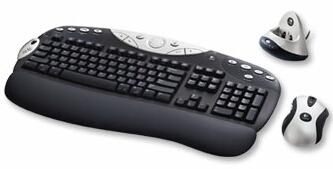 | Logitech Cordless MX Duo - $100 I personally don't have one yet, but I've read many reviews online and tried a few wireless keyboards myself. I like RF wireless devices because IR devices need a direct line of sight to the receiver. The difficulty I have found choosing an RF keyboard is finding one with good range. Most only have a range of 6 feet, some less than 3 (why even bother with wireless). The Logitech KB and Mouse are said to have a range good to atleast 20 feet. The MX Cordless Duo also has the additional bonus of using rechargable batteries in the mouse. | ![]() |