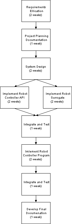 We will complete the entire system design for all the mandatory component before the end of Senior Design I. The implementation of all code will occur in Senior Design II. Below is tentative flowchart of development activities:
