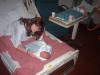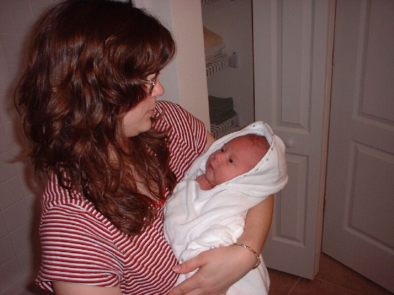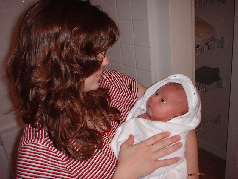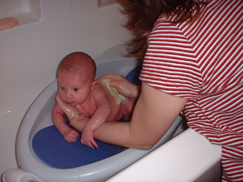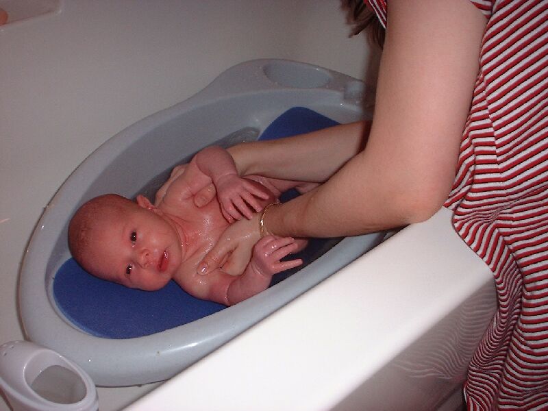 You can see our new house in the background in some of the pics. That is her first real bath too (you have to wait for the belly button to heal).