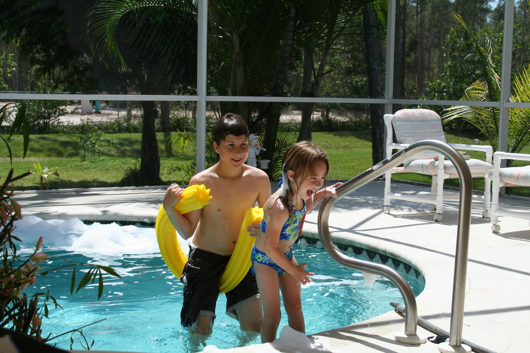 We took the kids down to Ft. Myers to Regina's dad's house for Spring Break this year. This is a group of photos of them playing in the hot tub and the pool.